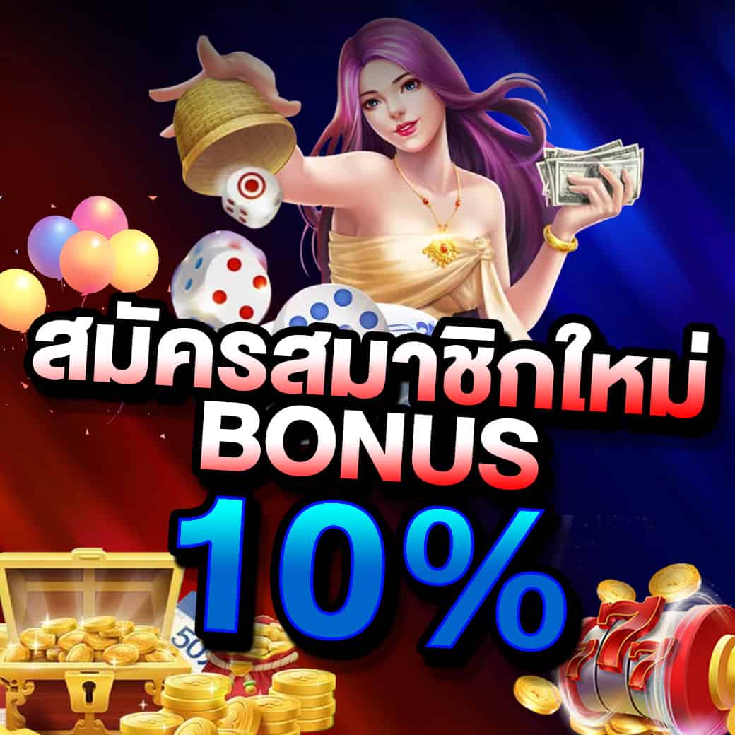 เริ่มต้นกันที่โบนัสต้อนรับสุดพิเศษ เมื่อสมัครสมาชิกใหม่รับทันทีโบนัส 100% สูงสุดถึง 10,000 บาท เพียงแค่ทำยอดเทิร์นโอเวอร์ 5 เท่าเท่านั้น ที่สำคัญคือสามารถถอนได้จริงไม่มีกั๊ก! นอกจากนี้ยังมีเครดิตฟรี 500 บาทให้ทดลองเล่นโดยไม่ต้องฝากเงินก่อน ถือเป็นโอกาสดีที่จะได้ทำความรู้จักกับเกมต่างๆ บนแพลตฟอร์มของเรา
